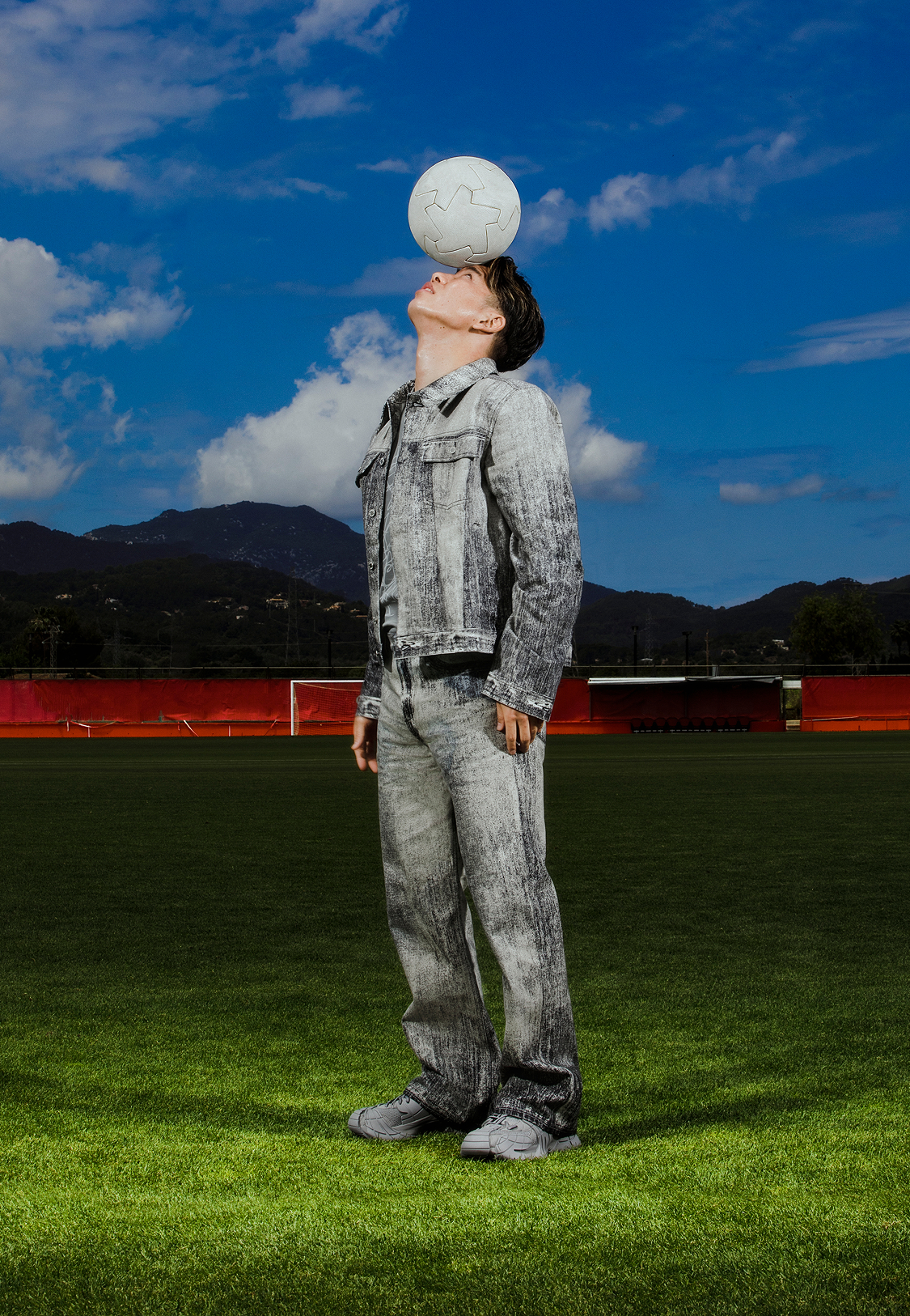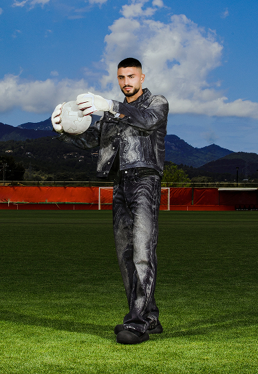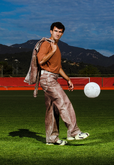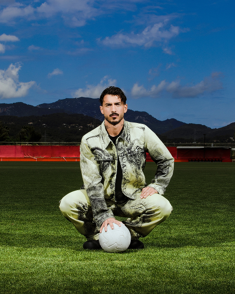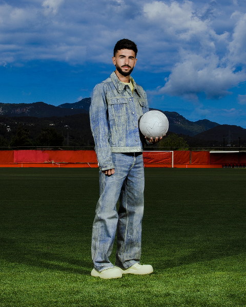 Shot by Nadine Fraczkowski at the club’s stadium, the portraits of Mateu Jaume, Martin Valjent, Manu Morlanes, Takuma Asano, Leo Román, and Antonio Sánchez celebrate Balearic heritage and explore the intersection of fashion and football through a CAMPERLAB lens.